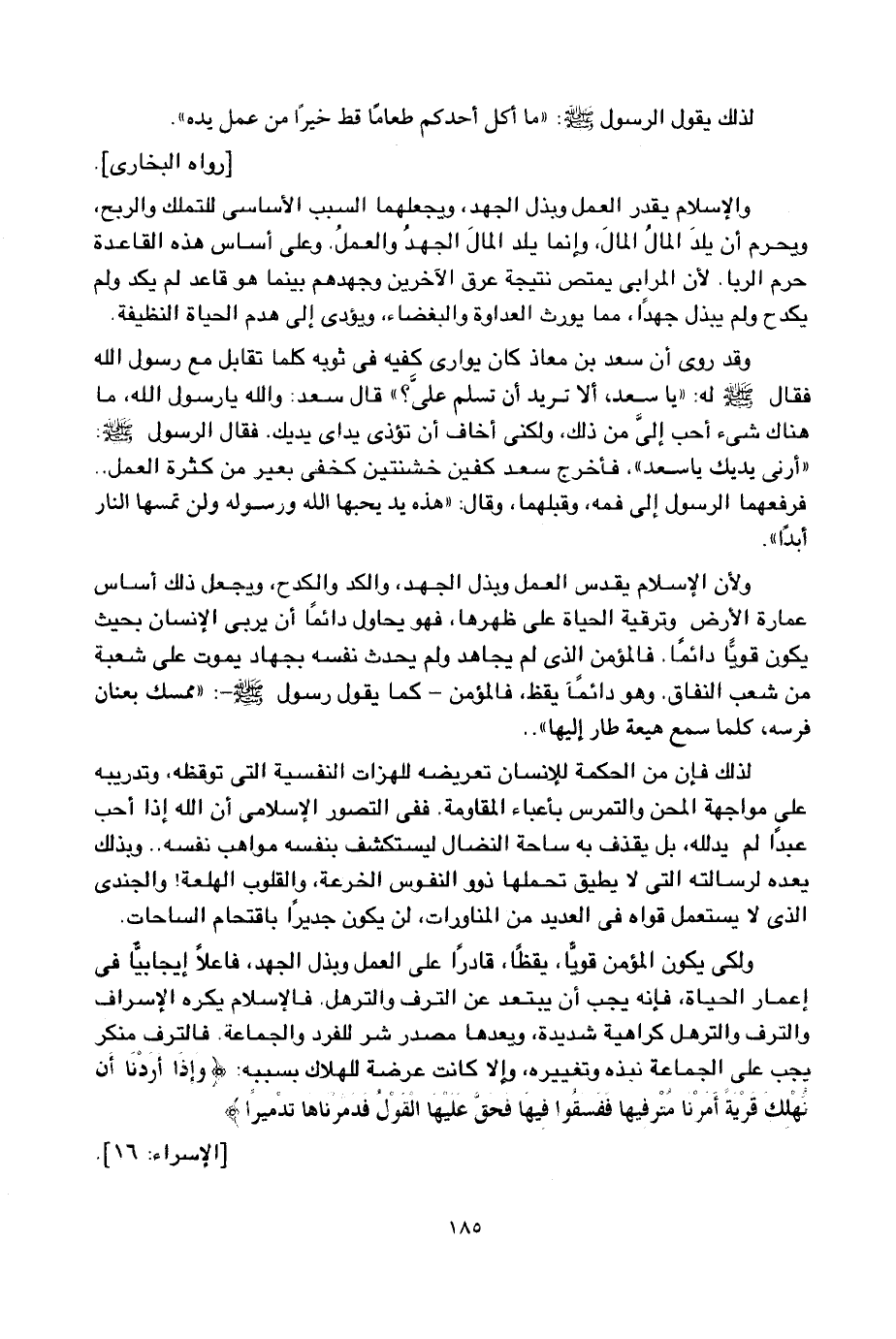 لذلك يقول الرسول -صلى الله عليه وسلم: "ما أكل أحدكم طعاما قط خيرا من عمل يده". "رواه البخاري".