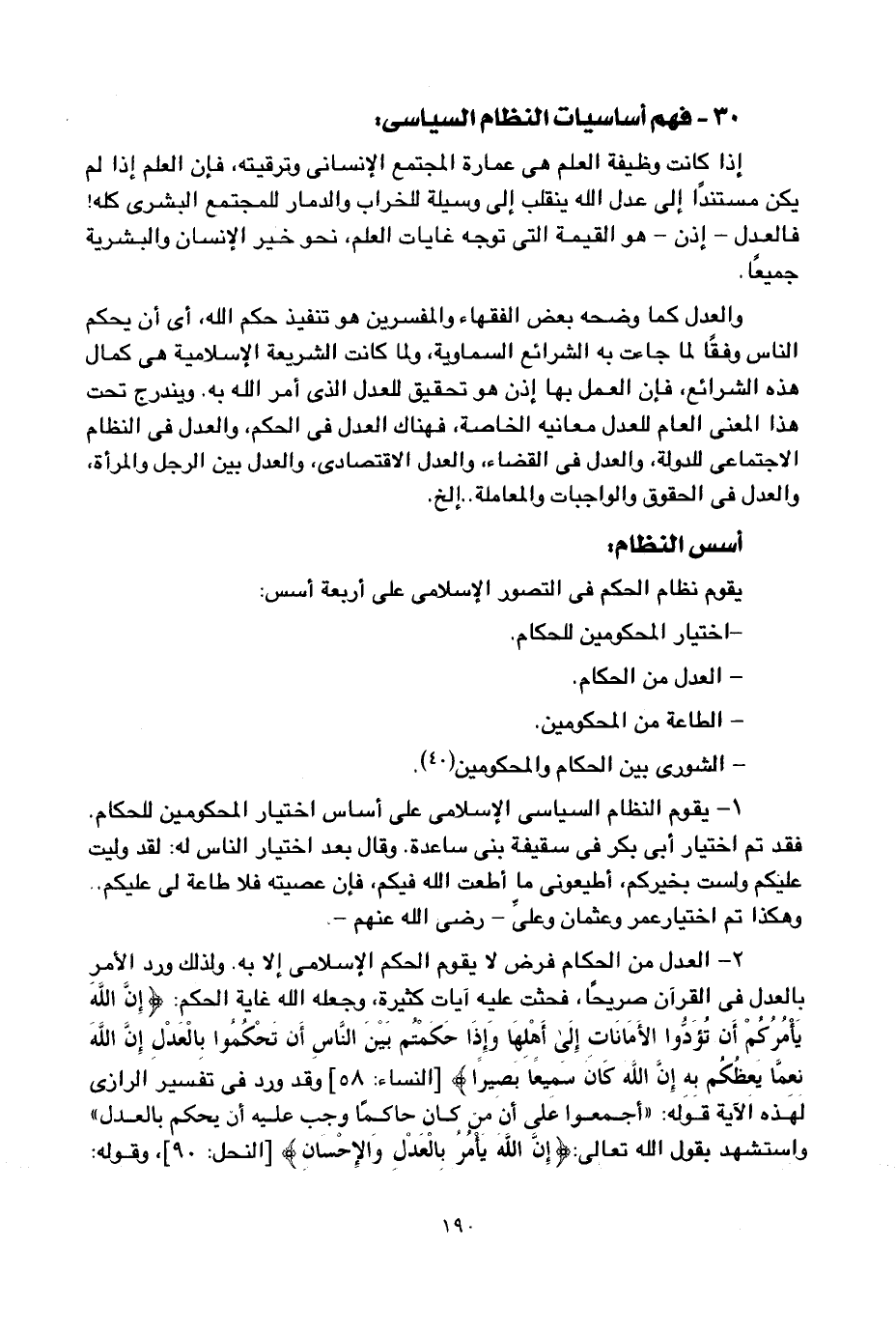 يقوم نظام الحكم في التصور الإسلامي على أربعة أسس: