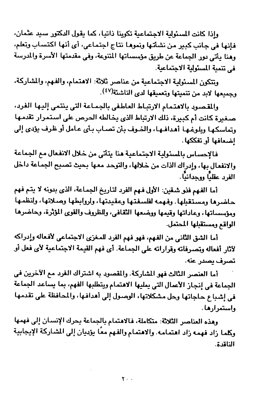 1 سيد أحمد عثمان: المسئولية الاجتماعية والشخصية المسلمة، القاهرة، مكتبة الأنجلو المصرية، 1399هـ 1979م، ص269-272.