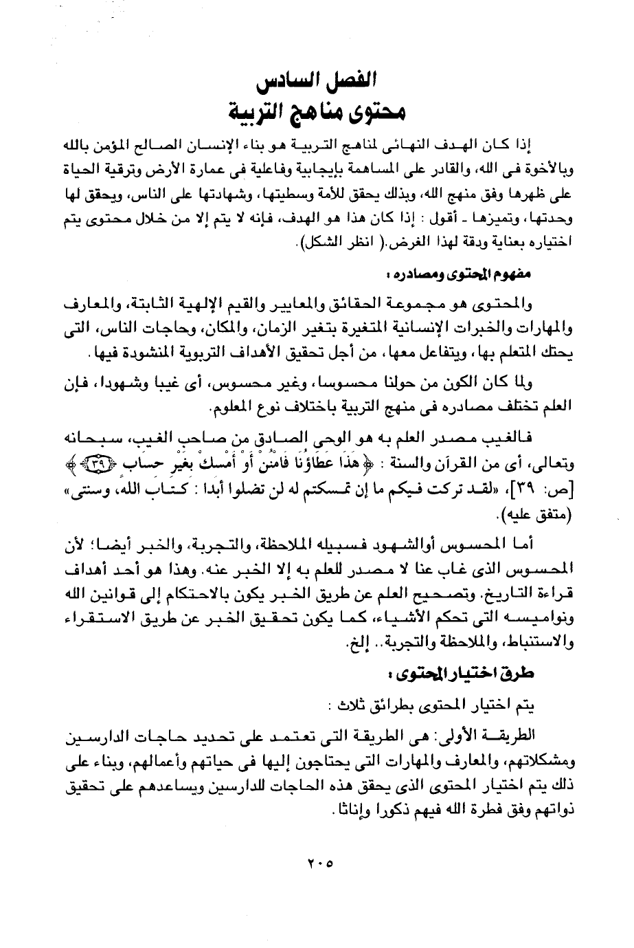 الفصل السادس: محتوى مناهج التربية