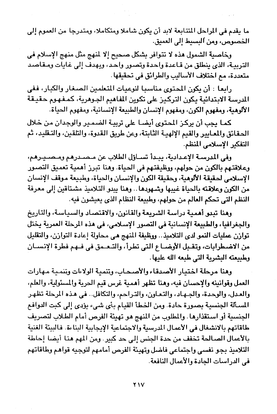 ما يقدم في المراحل المتتابعة لا بد أن يكون شاملا ومتكاملا، ومتدرجا من العموم إلى الخصوص، ومن البسيط إلى العميق.
