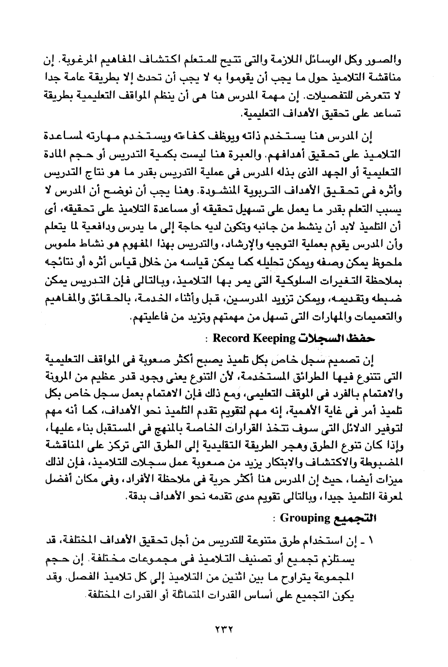 1- إن استخدام طرق متنوعة للتدريس من أجل تحقيق الأهداف المختلفة، قد يستلزم تجميع أو تصنيف التلاميذ في مجموعات مختلفة, إن حجم المجموعة يتراوح ما بين اثنين من التلاميذ إلى كل تلاميذ الفصل، وقد يكون التجميع على أساس القدرات المتماثلة أو القدرات المختلفة.