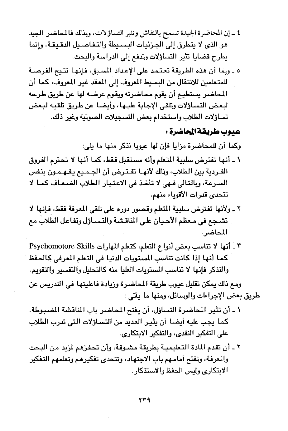 3- أنها لا تناسب بعض أنواع التعلم, كتعلم المهارات Psychomotore Skills كما أنها إذا كانت تناسب المستويات الدنيا في التعلم المعرفي كالحفظ والتذكر, فإنها لا تناسب المستويات العليا منه كالتحليل والتفسير والتقويم.