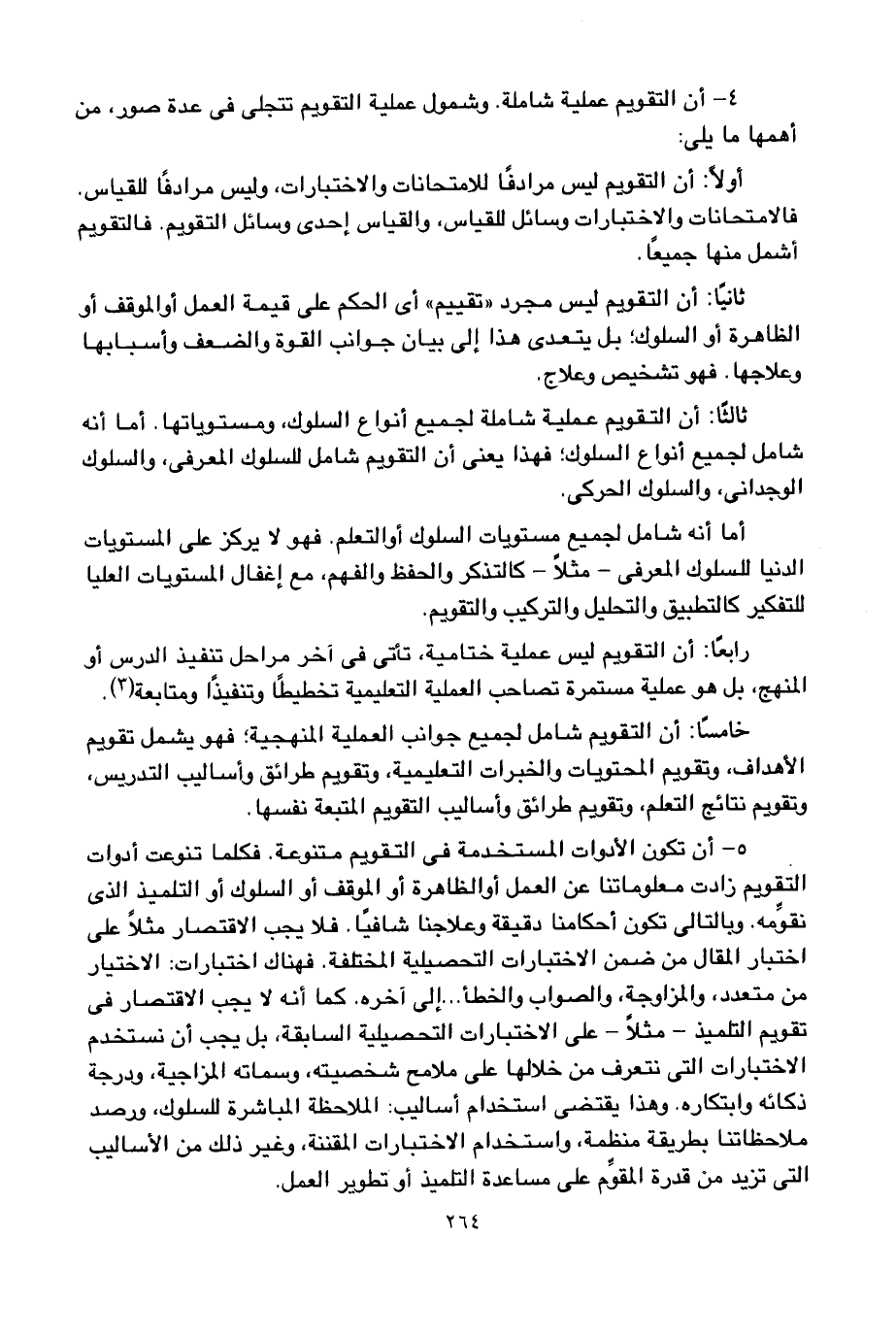 4- أن التقويم عملية شاملة، وشمول عملية التقويم تتجلى في عدة صور، من أهمها ما يلي:
