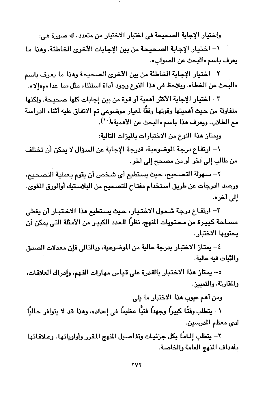 3- ارتفاع درجة شمول الاختبار، حيث يستطيع هذا الاختبار أن يغطي مساحة كبيرة من محتويات المنهج، نظرا للعدد الكبير من الأمثلة التي يمكن أن يحتويها الاختبار.