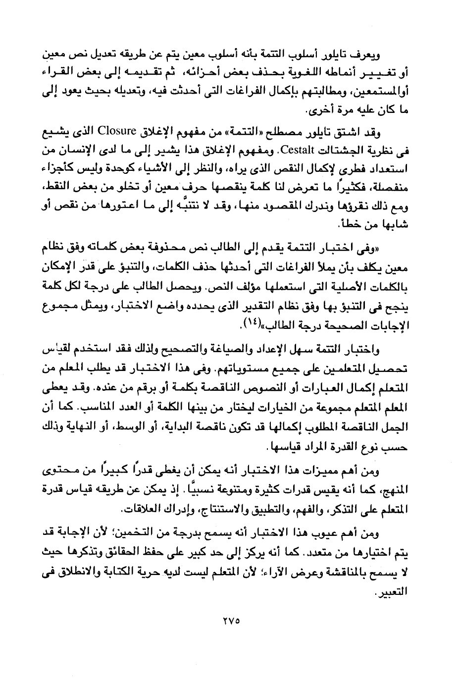 1 لمزيد من التفاصيل انظر: رشدي أحمد طعيمة: "اختبار التتمة وتعليم اللغة العربية كلغة ثانية، في مجلة معهد اللغة العربية، جامعة أم القرى بمكة المكرمة، العدد الثاني، 1404هـ-1984م.