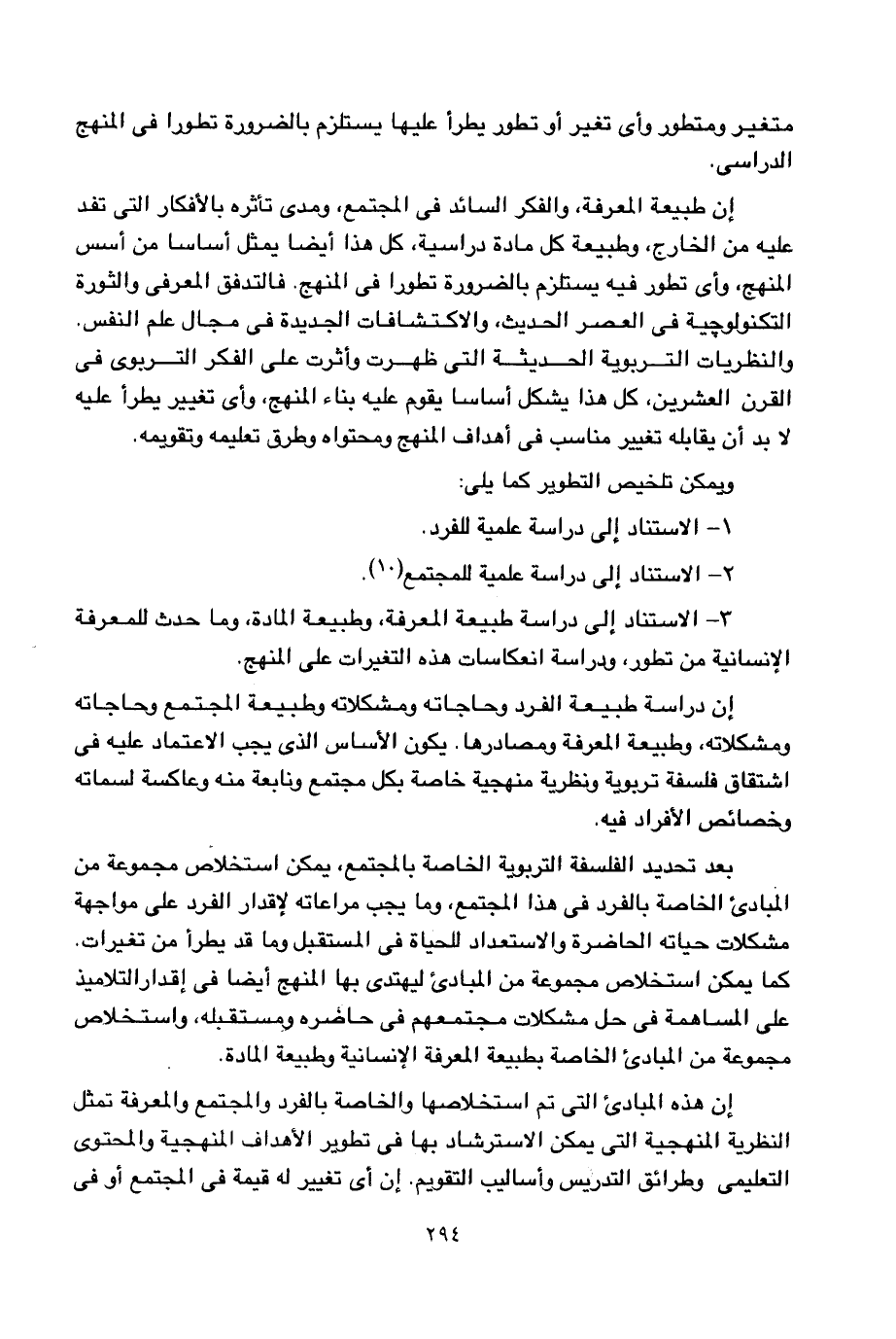 3- الاستناد إلى دراسة طبيعة المعرفة، وطبيعة المادة، وما حدث للمعرفة الإنسانية من تطور، ودراسة انعكاسات هذه التغيرات على المنهج.
