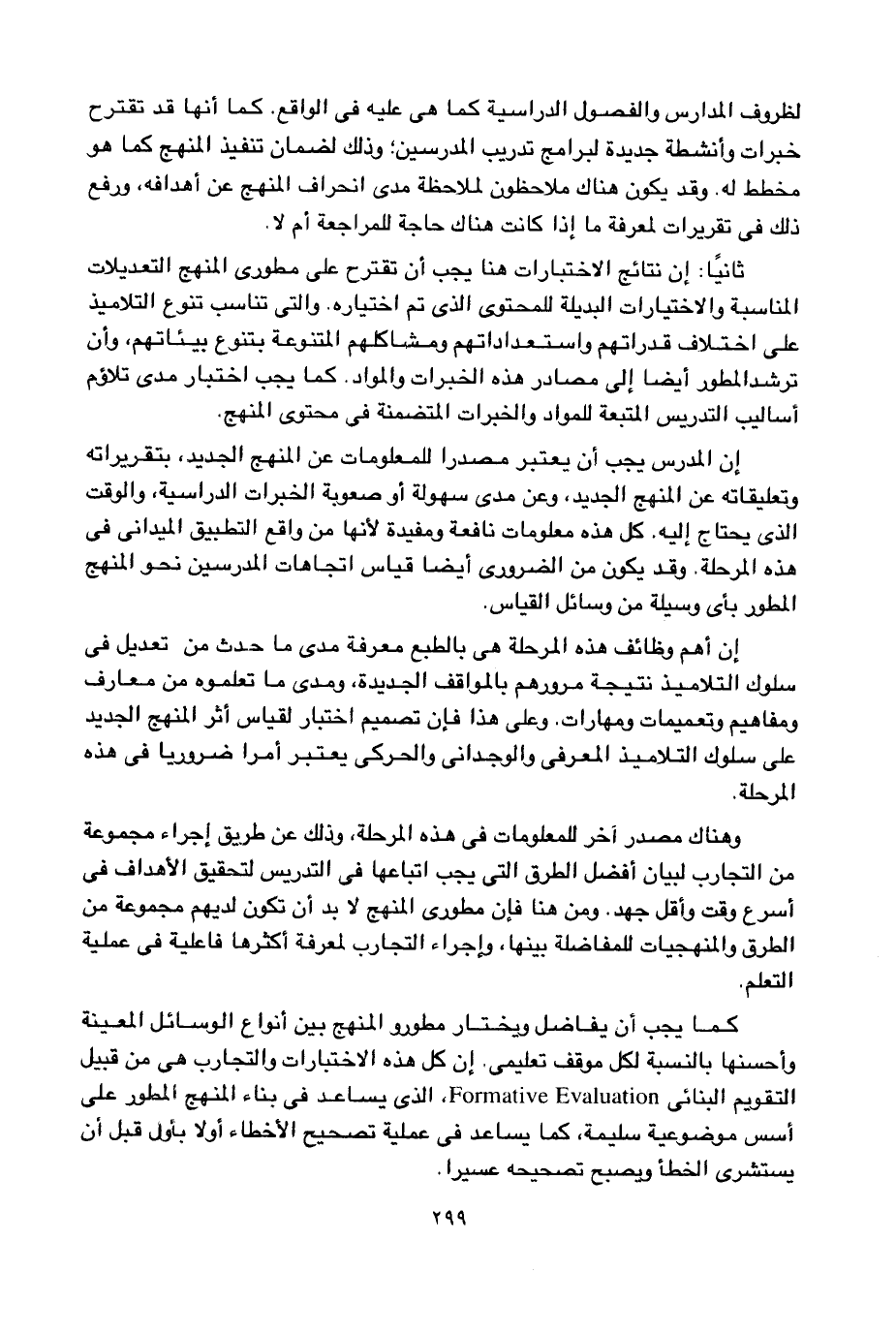 ثانيا: إن نتائج الاختبارات هنا يجب أن تقترح على مطوري المنهج التعديلات المناسبة والاختيارات البديلة للمحتوى الذي تم اختياره، والتي تناسب تنوع التلاميذ على اختلاف قدراتهم واستعداداتهم ومشاكلهم المتنوعة بتنوع بيئاتهم، وأن ترشد المطور أيضا إلى مصادر هذه الخبرات والمواد، كما يجب اختبار مدى تلاؤم أساليب التدريس المتبعة للمواد والخبرات المتضمنة من محتوى المنهج.