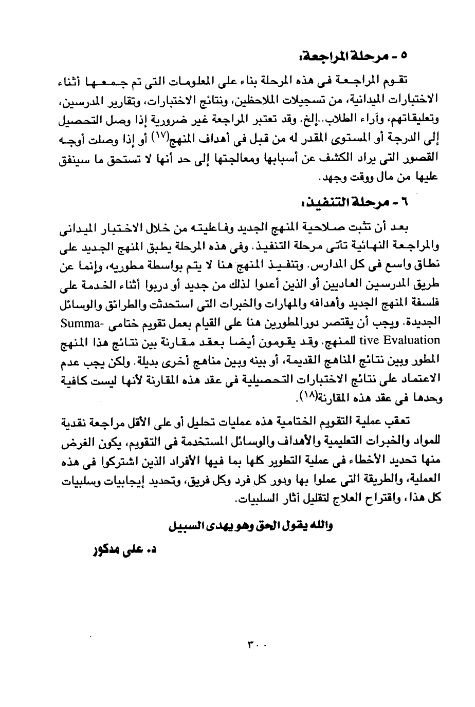 تقوم المراجعة في هذه المرحلة بناء على المعلومات التي تم جمعها أثناء الاختبارات الميدانية، من تسجيلات الملاحظين، ونتائج الاختبارات، وتقارير المدرسين، وتعليقاتهم، وآراء الطلاب ... إلخ. وقد تعتبر المراجعة غير ضرورية إذا وصل التحصيل إلى الدرجة أو المستوى المقدر له من قبل في أهداف المنهج1, أو إذا وصلت أوجه القصور التي يراد الكشف عن أسبابها ومعالجتها إلى حد أنها لا تستحق ما سينفق عليها من مال ووقت وجهد.