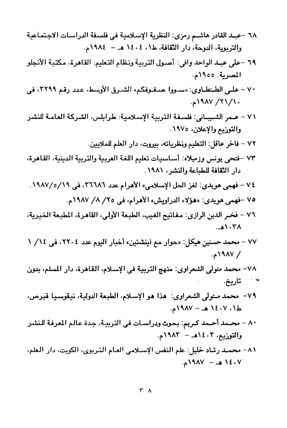 78- محمد متولي الشعراوي: منهج التربية في الإسلام، القاهرة، دار المسلم، بدون تاريخ.