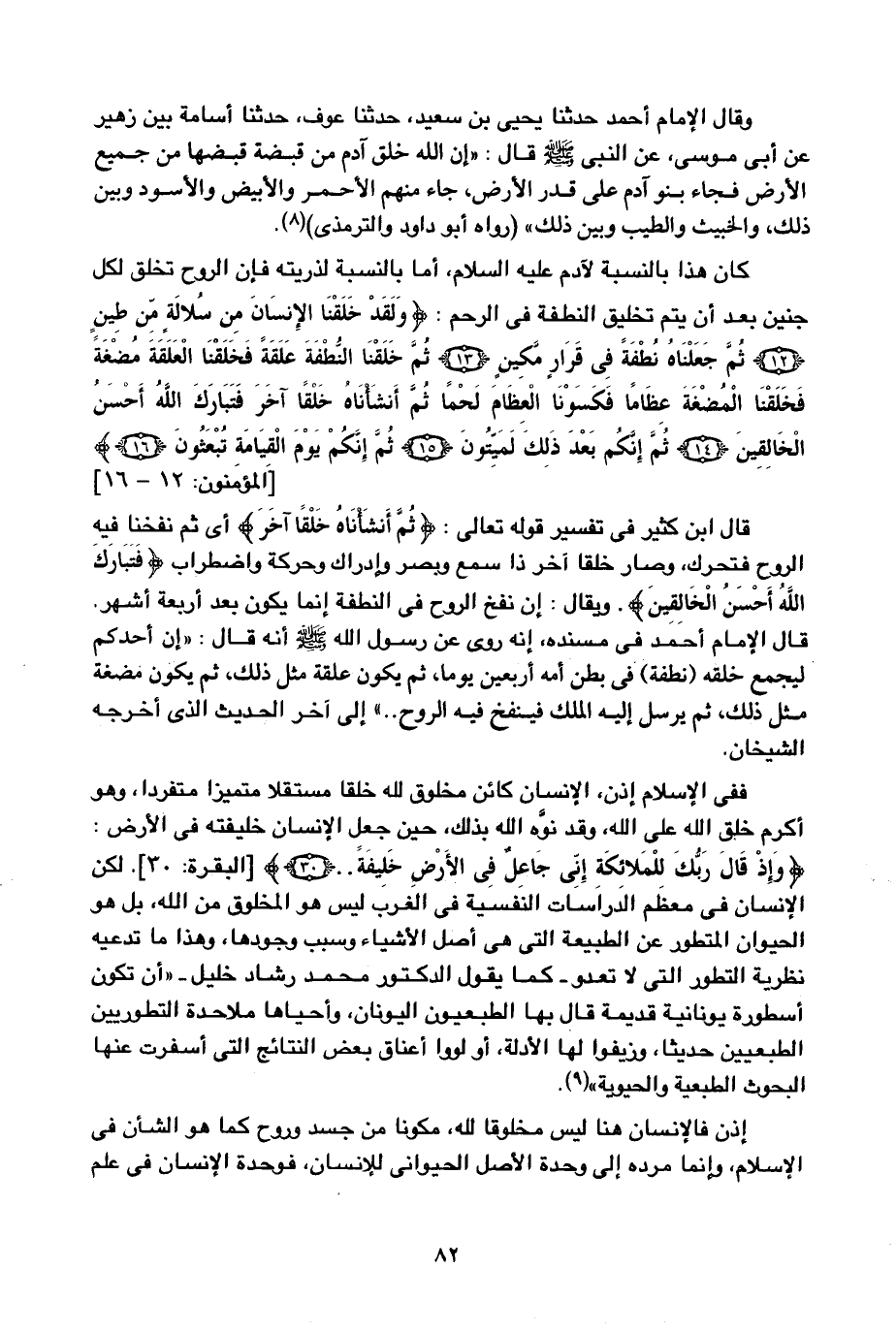 ففي الإسلام إذن، الإنسان كائن مخلوق لله خلقا مستقلا متميزا متفردا، وهو أكرم خلق الله على الله، وقد نوه الله بذلك، حين جعل الإنسان خليفته في الأرض: {وَإِذْ قَالَ رَبُّكَ لِلْمَلائِكَةِ إِنِّي جَاعِلٌ فِي الْأَرْضِ خَلِيفَةً} [البقرة: 30] ، لكن الإنسان في معظم الدراسات النفسية في الغرب ليس هو المخلوق من الله، بل هو الحيوان المتطور عن الطبيعة التي هي أصل الأشياء وسبب وجودها، وهذا ما تدعيه نظرية التطور التي لا تعدو -كما يقول الدكتور محمد رشاد خليل- "أن تكون أسطورة يونانية قديمة قال بها الطبعيون اليونان، وأحياها ملاحدة التطوريين الطبعيين حديثا، وزيفوا لها الأدلة، أو لووا أعناق بعض النتائج التي أسفرت عنها البحوث الطبعية والحيوية"2.