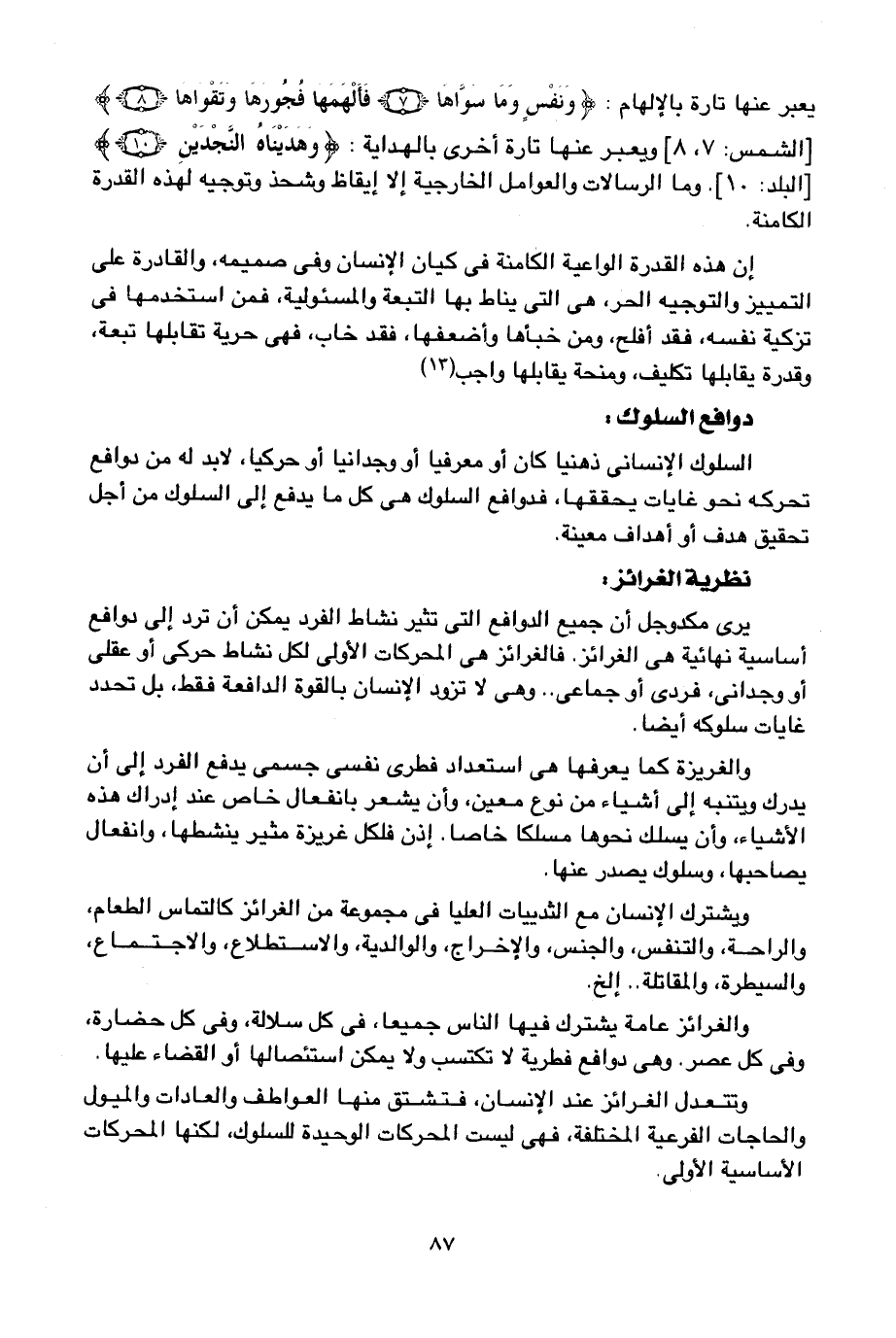 والغرائز عامة يشترك فيها الناس جميعا، في كل سلالة، وفي كل حضارة، وفي كل عصر، وهي دوافع فطرية لا تكتسب ولا يمكن استئصالها أو القضاء عليها.