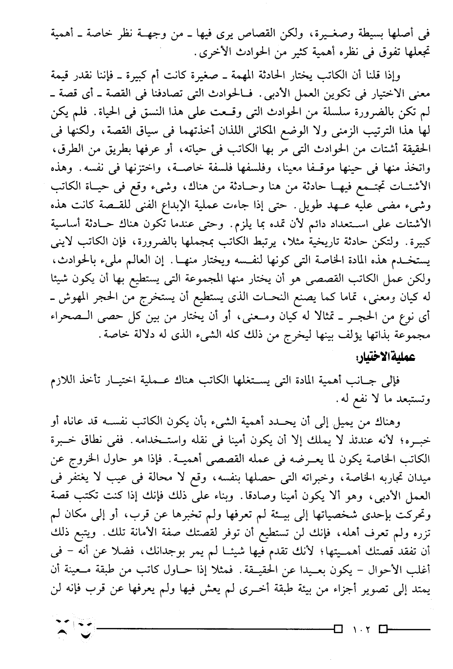 فإلى جانب أهمية المادة التي يستغلها الكاتب هناك عملية اختيار تأخذ اللازم, وتستبعد ما لا نفع له.