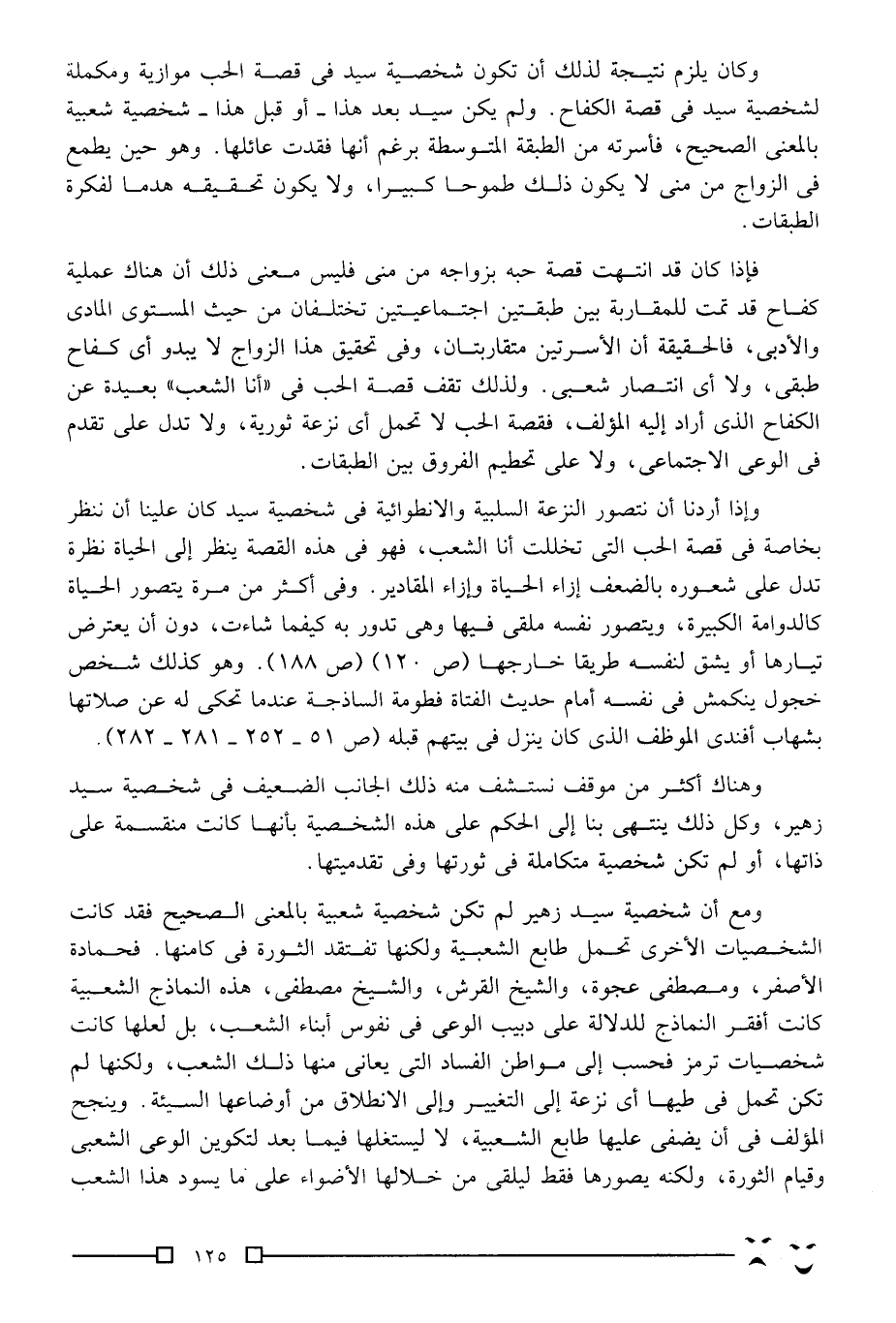 وهناك أكثر من موقف نستشف منه ذلك الجانب الضعيف في شخصية سيد زهير، وكل ذلك ينتهي بنا إلى الحكم على هذه الشخصية بأنها كانت منقسمة على ذاتها، أو لم تكن شخصية متكاملة في ثورتها وفي تقدميتها.