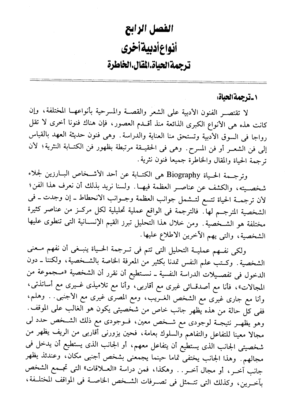 الفصل الرابع: أنواع أدبية أخرى: ترجمة الحياة، المقال، الخاطرة