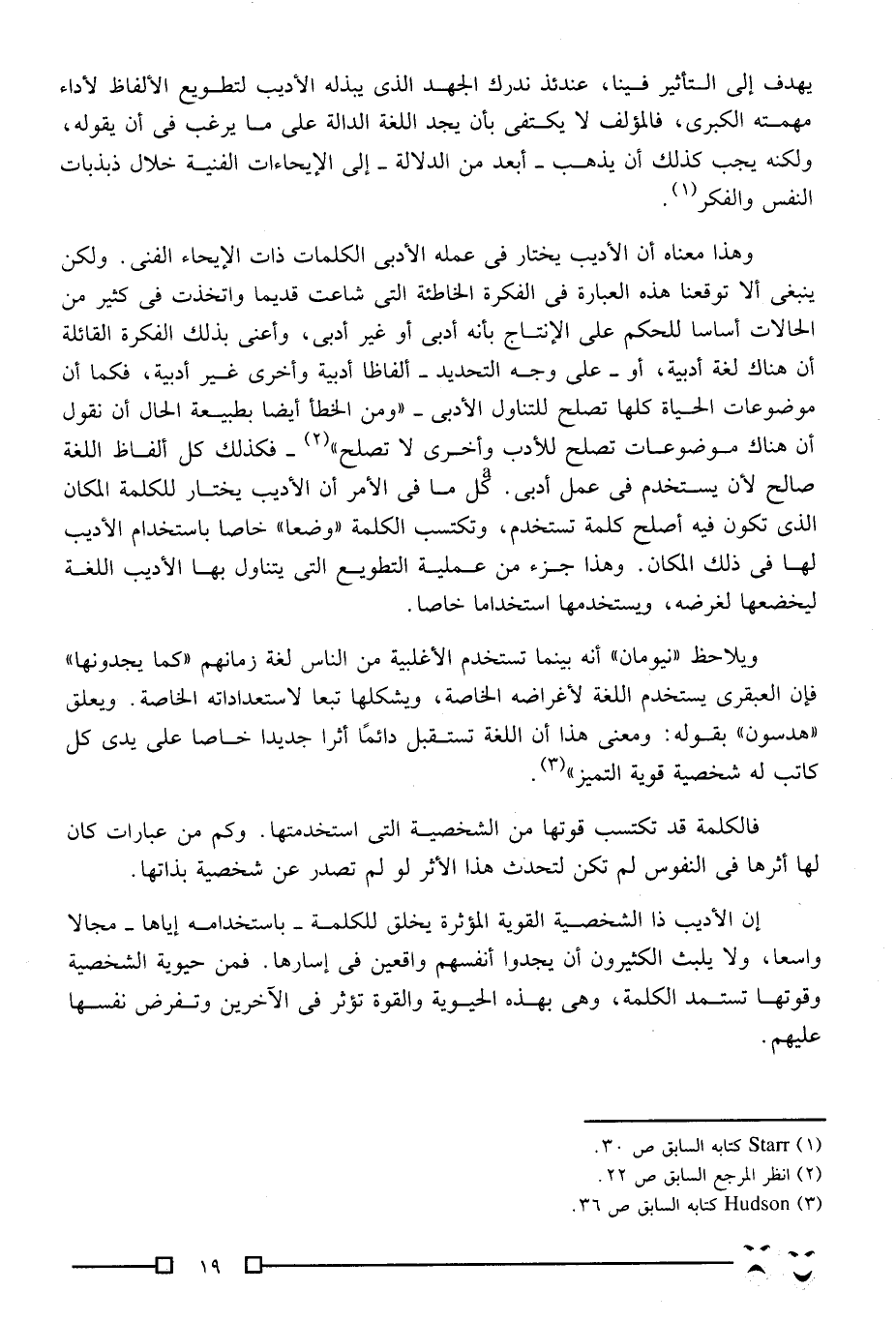 يهدف إلى التأثير فينا، عندئذ ندرك الجهد الذي يبذله الأديب لتطويع الألفاظ لأداء مهمته الكبرى، فالمؤلف لا يكتفي بأن يجد اللغة الدالة على ما يرغب في أن يقوله، ولكنه يجب كذلك أن يذهب -أبعد من الدلالة- إلى الإيحاءات الفنية خلال ذبذبات النفس والفكر1.