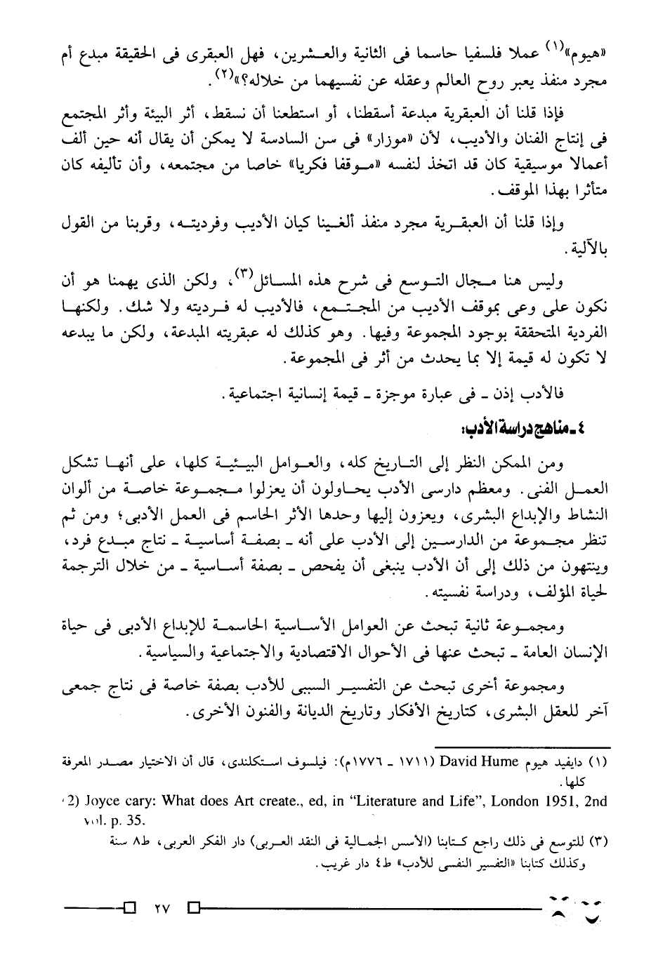 3 للتوسع في ذلك راجع كتابنا "الأسس الجمالية في النقد العربي" دار الفكر العربي، ط8 سنة2001, وكذلك كتابنا "التفسير النفسي للأدب" ط4 دار غريب.
