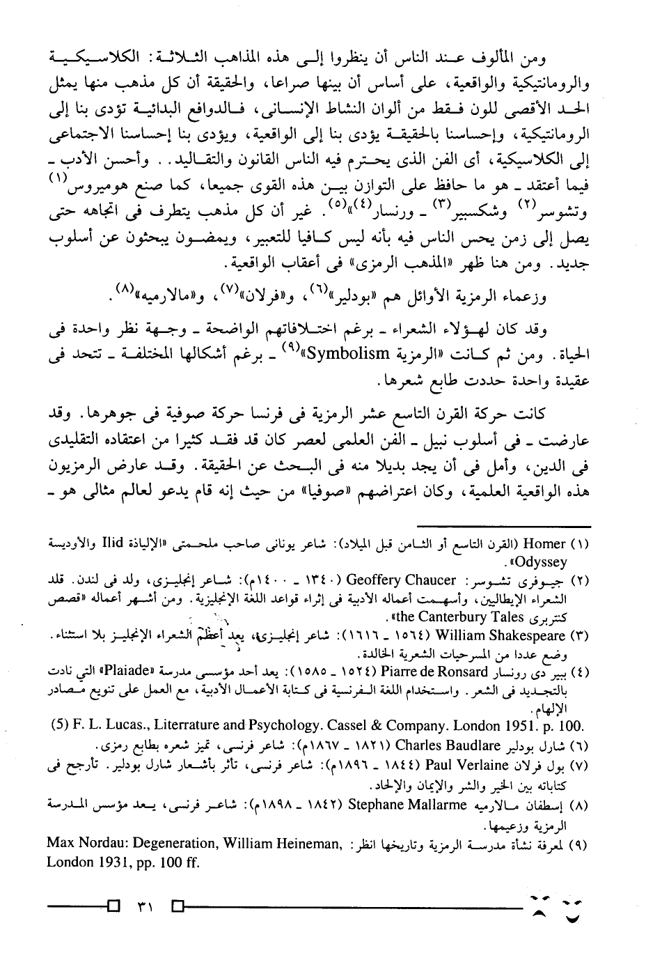 9 لمعرفة نشأة مدرسة الرمزية وتاريخها انظر: Max Nordau: Degeneration, William Heineman, London 1931, pp. 100 ff.
