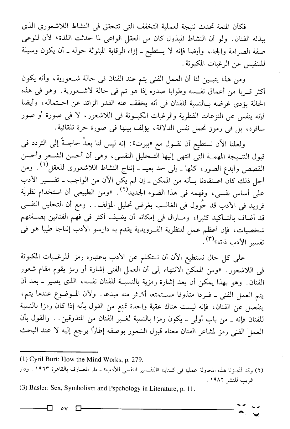 2 وقد أنجزنا هذه المحاولة عمليًّا في كتابنا "التفسير النفسي للأدب"، دار المعارف بالقاهرة 1963, ودار غريب للنشر 1982.