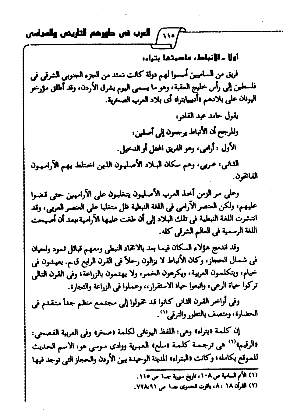 الثاني: عربي، وهم سكان البلاد الأصليون الذين اختلط بهم الآراميون الفاتحون.
