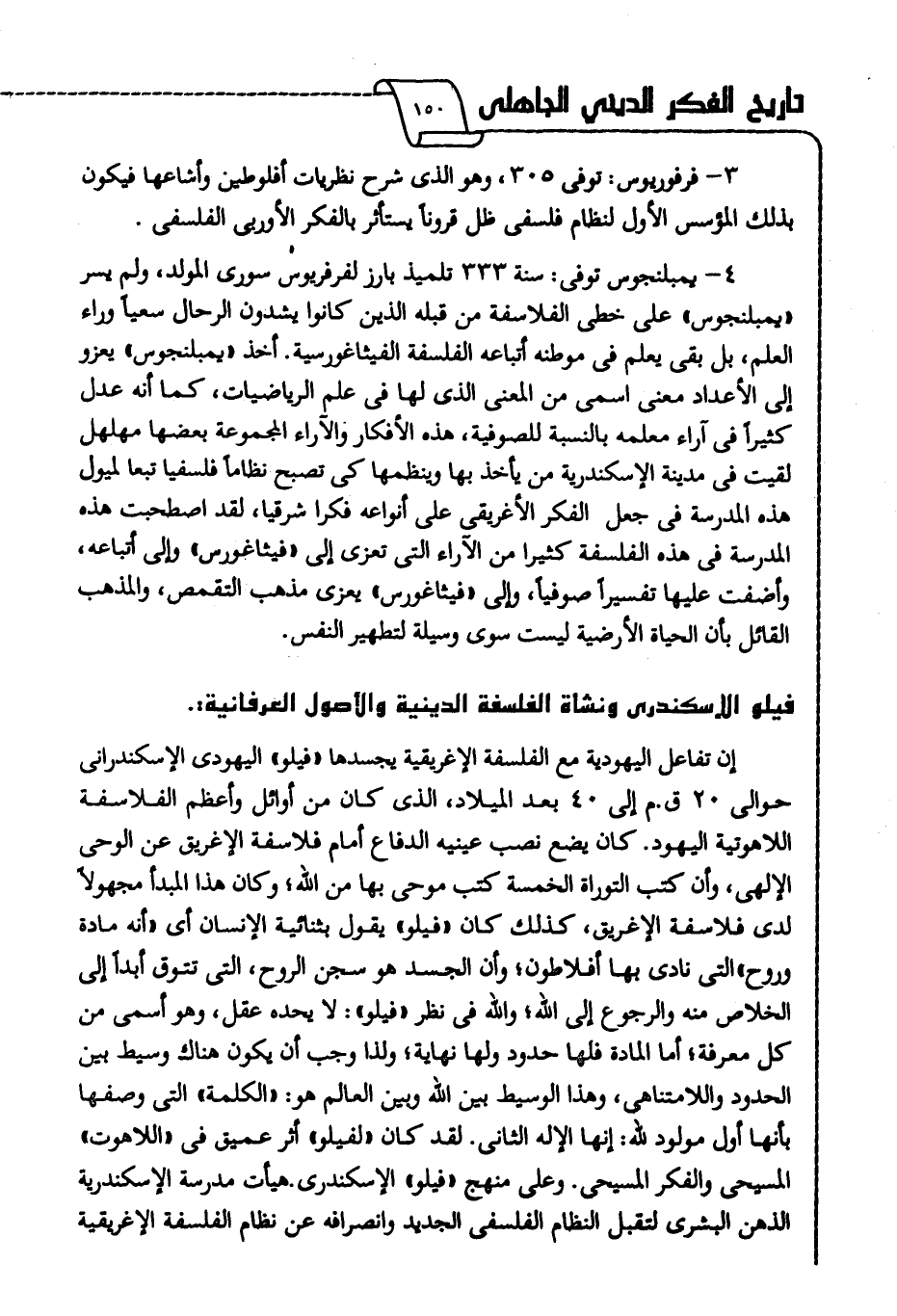 3- فرفوريوس: توفي 305، وهو الذي شرح نظريات أفلوطين وأشاعها، فيكون بذلك المؤسس الأول لنظام فلسفي ظل قرونا يستأثر بالفكر الأوروبي الفلسفي.