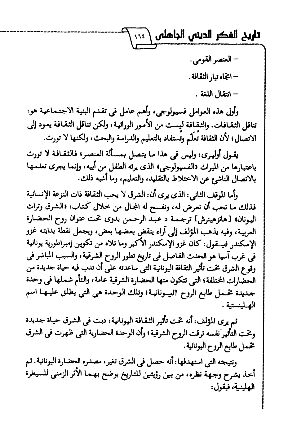 ثم يرى المؤلف: أنه تحت تأثير الثقافة اليونانية دبت في الشرق حياة جديدة، وتحت التأثير نفسه ترقت الروح الشرقية؛ وأن الوحدة الحضارية التي ظهرت في الشرق تحمل طابع الروح اليونانية.