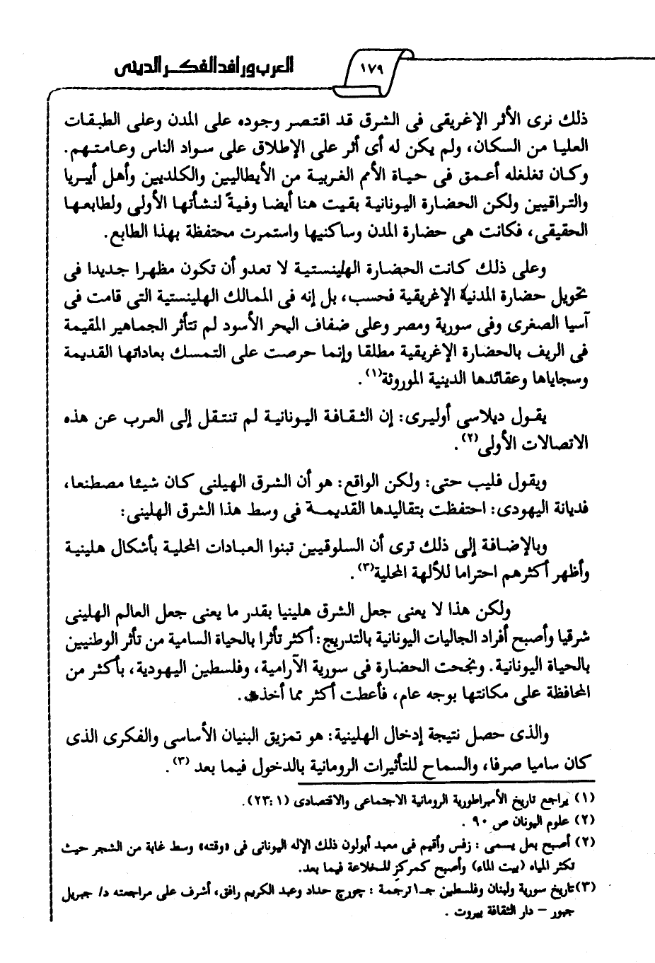 يقول ديلاسي أولير: إن الثقافة اليونانية لم تنتقل إلى العرب عن هذه الاتصالات الأولى2.