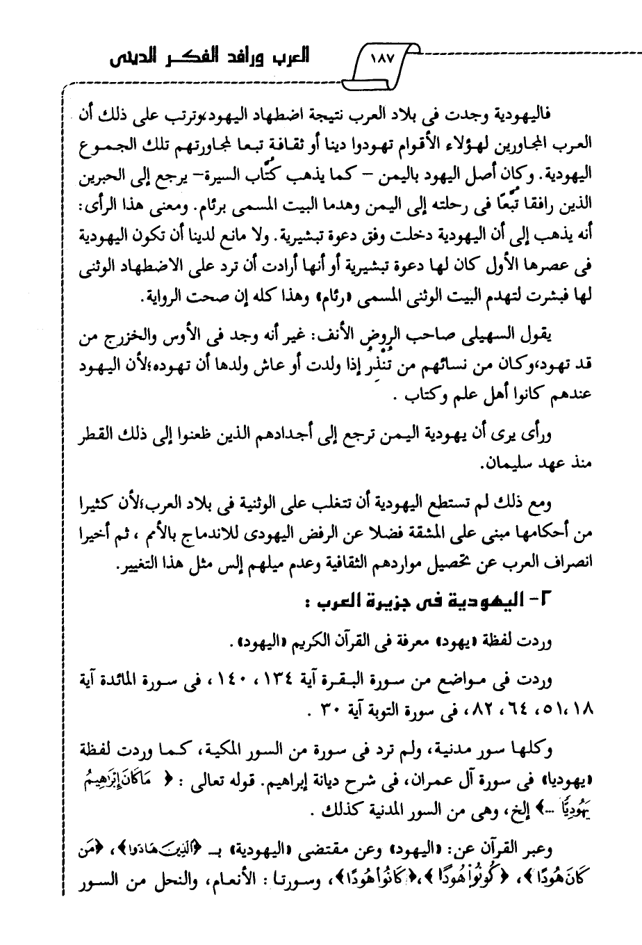 ومع ذلك لم تستطع اليهودية أن تتغلب على الوثنية في بلاد العرب؛ لأن كثيرا من أحكامها مبني على المشقة فضلا عن الرفض اليهودي للاندماج بالأمم، ثم أخيرا انصراف العرب عن تحصيل مواردهم الثقافية وعدم ميلهم إلى مثل هذا التغيير.