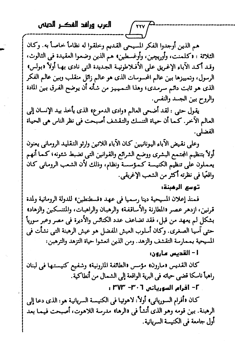 يقول حتى: لقد أضحى العالم "وادي الدموع" الذي يأخذ بيد الإنسان إلى العالم الآخر. كما أن حياة التنسك والتقشف أصبحت في نظر الناس هي الحياة الفضلى.