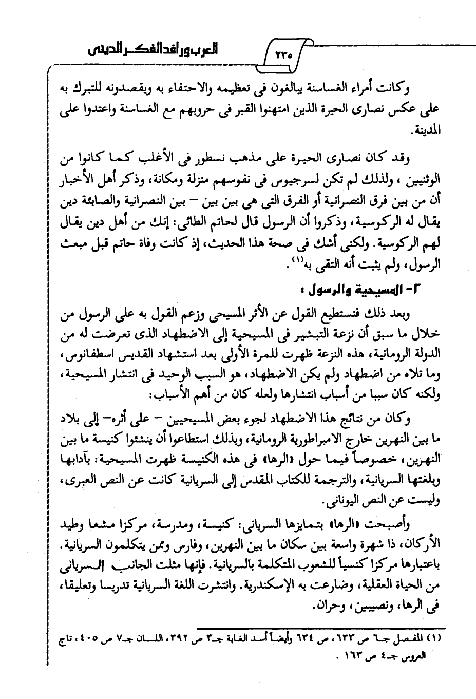 وقد كان نصارى الحيرة على مذهب نسطور في الأغلب كما كانوا من الوثنيين، ولذلك لم تكن لسرجيوس في نفوسهم منزلة ومكانة، وذكر أهل الأخبار أن من بين فرق النصرانية أو الفرق التي هي بين بين -بين النصرانية والصابئة دين يقال له الركوسية، وذكروا أن الرسول قال لحاتم الطائي: "إنك من أهل دين يقال له الركوسية"، ولكني أشك في صحة هذا الحديث؛ إذ كانت وفاة حاتم قبل مبعث الرسول، ولم يثبت أنه التقى به1.