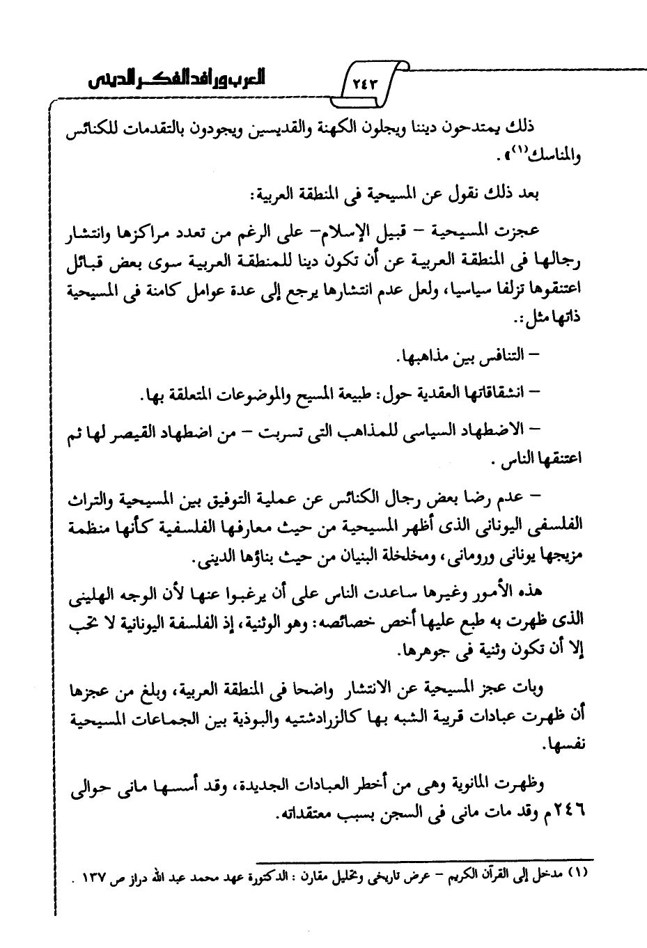 بعد ذلك نقول عن المسيحية في المنطقة العربية: