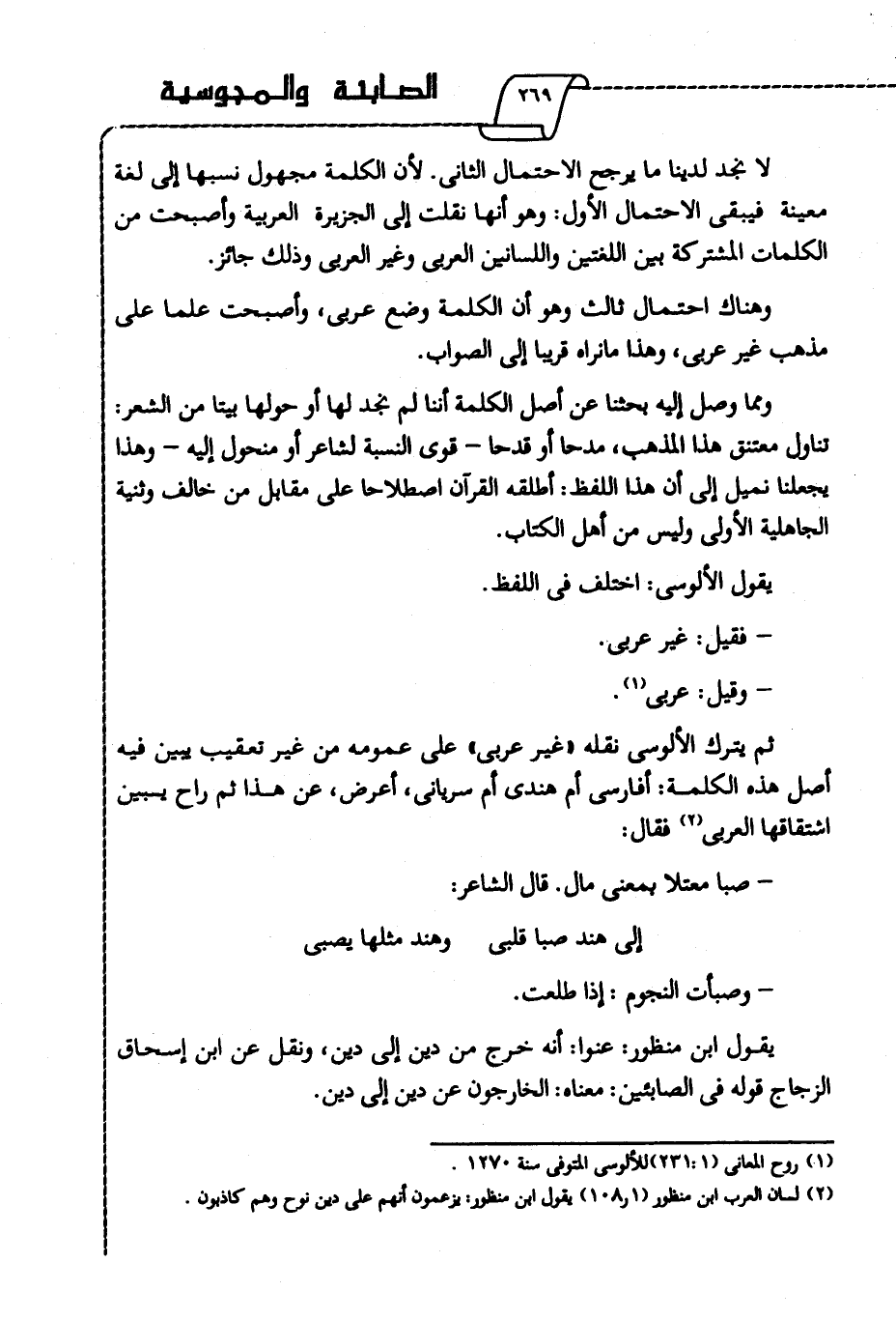 1 روح المعاني "1: 231" للألوسي المتوفي سنة 1270.