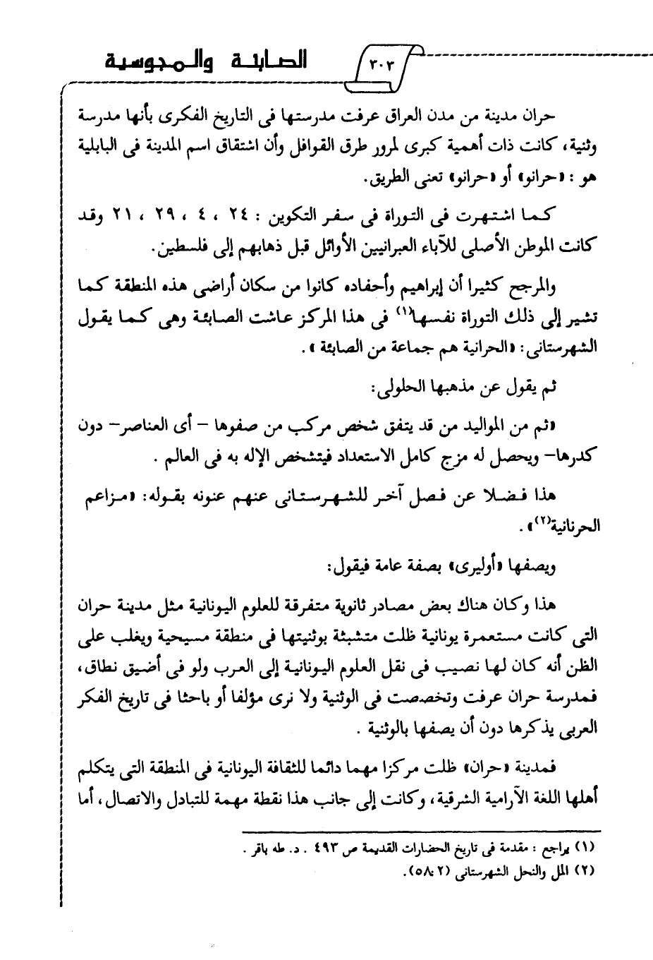 هذا فضلا عن فصل آخر للشهرستاني عنهم عنونه بقوله: "مزاعم الحرنانية"2.