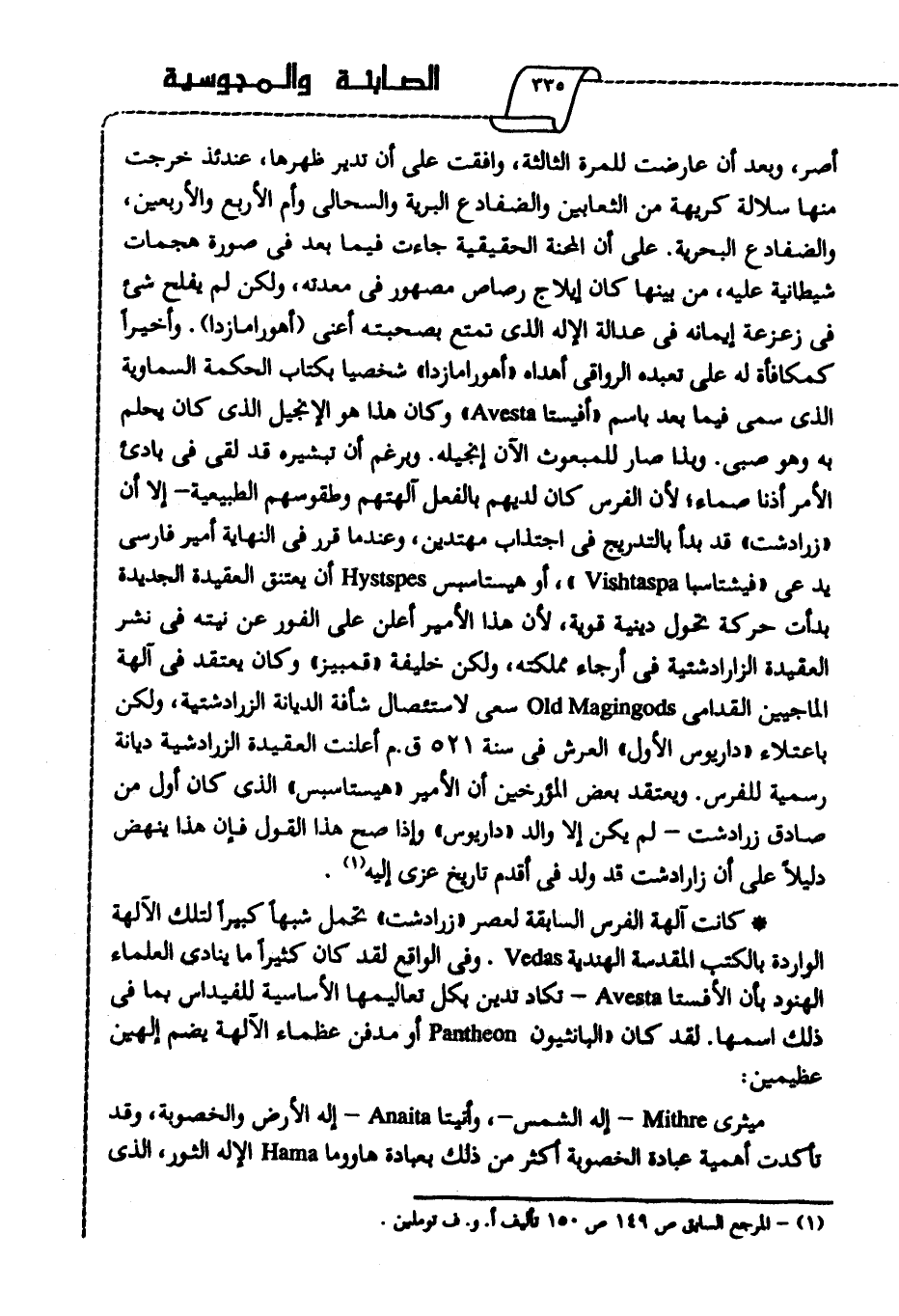 - كانت آلهة الفرس السابقة لعصر "زرادشت" تحمل شبهًا كبيرًا لتلك الآلهة الواردة بالكتب المقدسة الهندية Vedas، وفي الواقع لقد كان كثيرا ما ينادي العلماء الهنود بأن الأفستا Avesta- تكاد تدين بكل تعاليمها الأساسية للفيداس بما في ذلك اسمها، لقد كان "البانثيون Pantheon أو مدفن عظماء الآلهة يضم إلهين عظيمين: