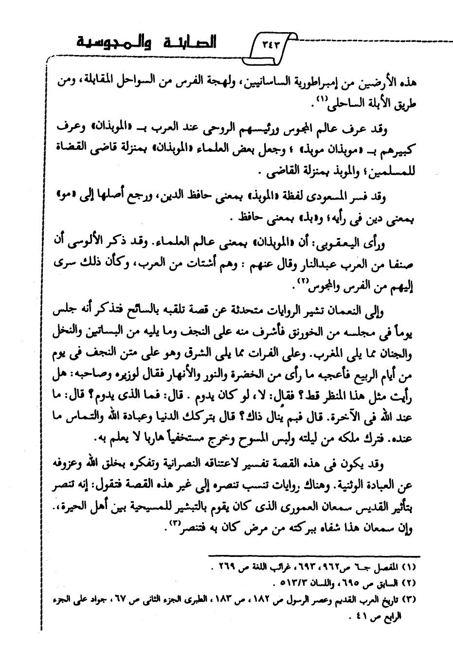 ورأى اليعقوبي: أن "الموبذان" بمعنى عالم العلماء، وقد ذكر الألوسي أن صنفًا من العرب عبد النار، وقال عنهم: وهم أشتات من العرب، وكأن ذلك سري إليهم من الفرس والمجوس2.