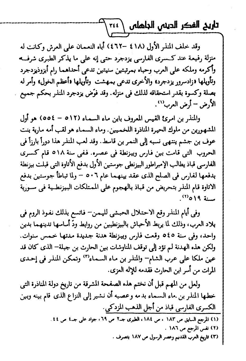 ولعل من المهم قبل أن نختم هذه الصفحة المشرقة من تاريخ دولة المناذرة التى خطها المنذر بن ماء السماء بدمه وعصبه أن نشير إلى النزاع الذي قام بينه وبين الكسرى الفارسي قباذ من أجل الذهب المزدكي.