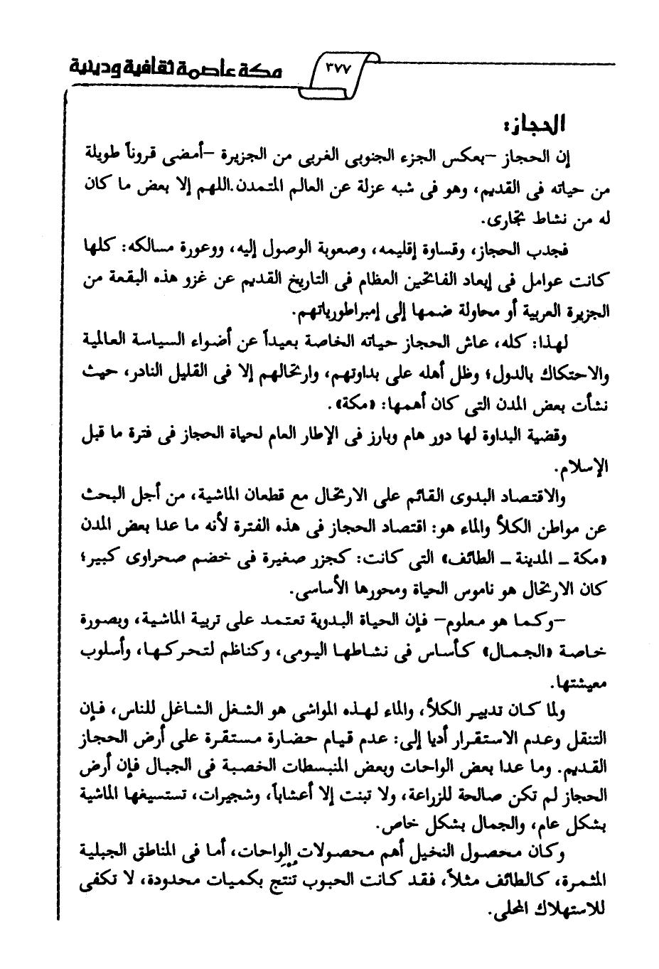 إن الحجاز -بعكس الجزء الجنوبي الغربي من الجزيرة- أمضى قرونا طويلة من حياته في القديم، وهو في شبه عزلة عن العالم المتمدن؛ اللهم إلا بعض ما كان له من نشاط تجاري.