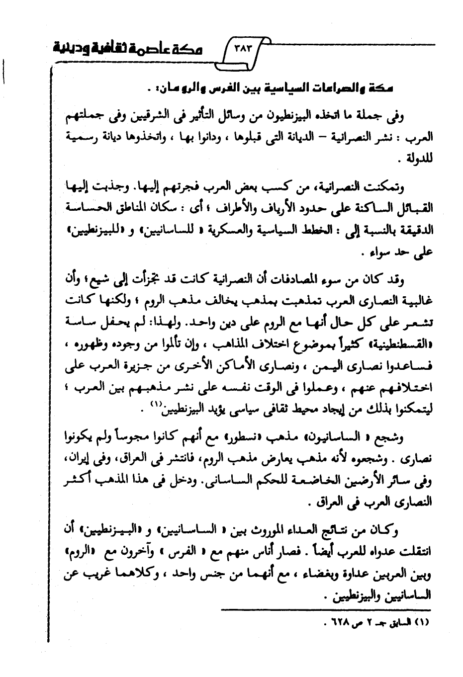وتمكنت النصرانية من كسب بعض العرب فجرتهم إليها، وجذبت إليها القبائل الساكنة على حدود الأرياف والأطراف؛ أي: سكان المناطق الحساسة الدقيقة بالنسبة إلى الخطط السياسية والعسكرية "للساسانيين" و"للبيزنطيين" على حد سواء.