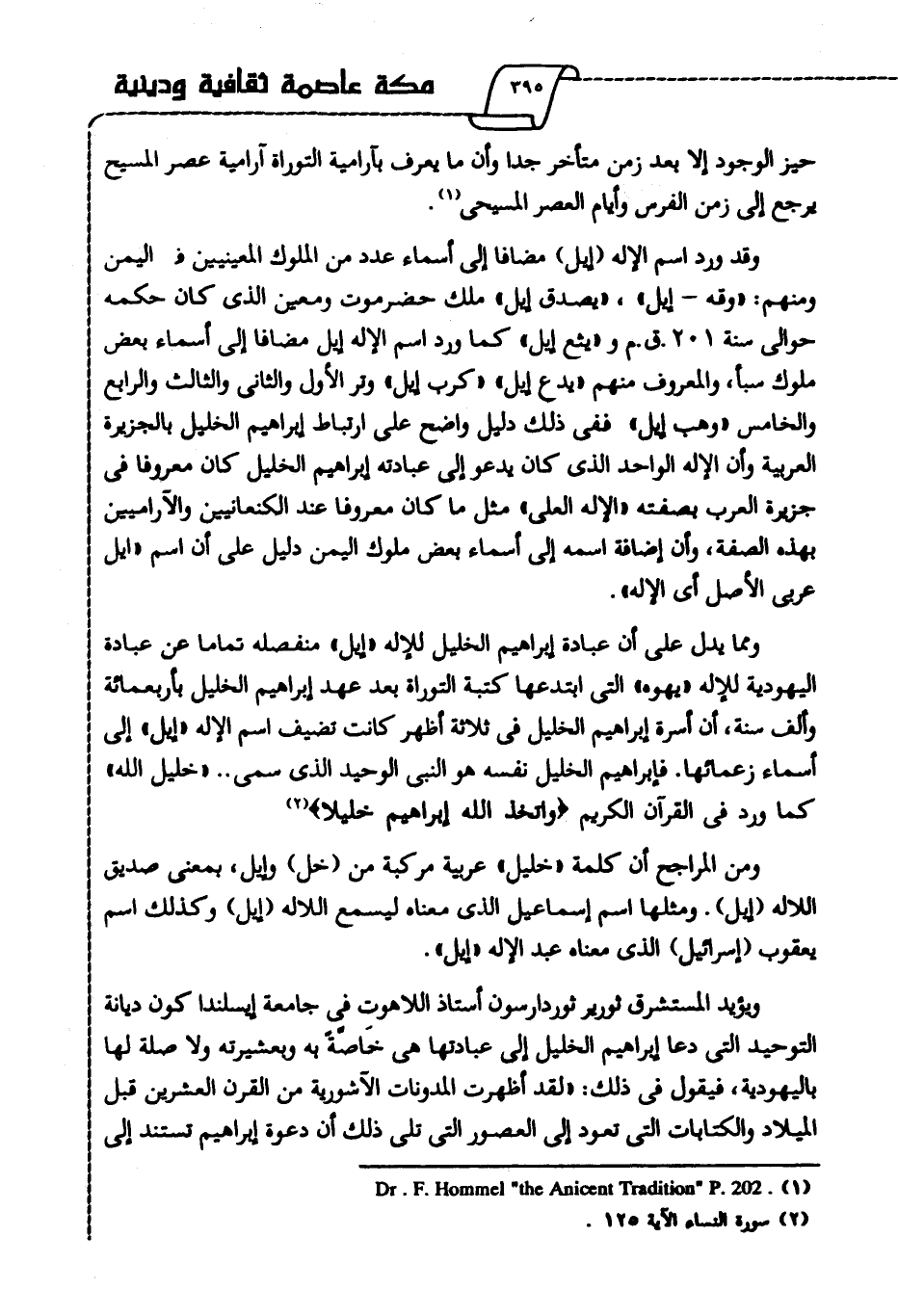 وقد ورد اسم الإله "إيل" مضافًا إلى أسماء عدد من الملوك المعينيين في اليمن ومنهم: "وقه -إيل"، "يصدق إيل" ملك حضرموت ومعين الذي كان حكمه حوالي سنة 201 ق. م. و"يشع إيل" كما ورد اسم الإله إيل مضافا إلى أسماء بعض ملوك سبأ، والمعروف منهم "يدع إبل" "كرب إيل" وتر الأول والثاني والثالث والرابع والخامس "وهب إيل"؛ ففى ذلك دليل واضح على ارتباط إبراهيم الخليل بالجزيرة العربية وأن الإله الواحد الذي كان يدعو إلى عبادته إبراهيم الخليل كان معروفًا في جزيرة العرب بصفته "الإله العلي" مثل ما كان معروفا عند الكنعانيين والآراميين بهذه الصفة، وأن إضافة اسمه إلى أسماء بعض ملوك اليمن دليل على أن اسم "إيل عربي الأصل أي الإله".