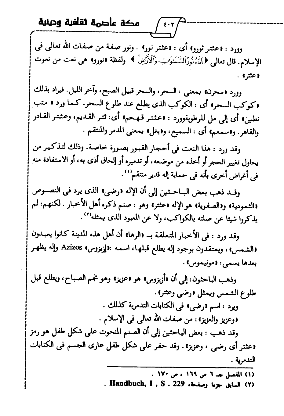 وقد ورد: في الأخبار المتعلقة بـ "الرها" أن أهل هذه المدينة كانوا يعبدون "الشمس"، ويعتقدون بوجود إله يطلع قبلها، اسمه: "إزيزوس" Azizos وإله يظهر بعدها يسمى: "مونيموس".