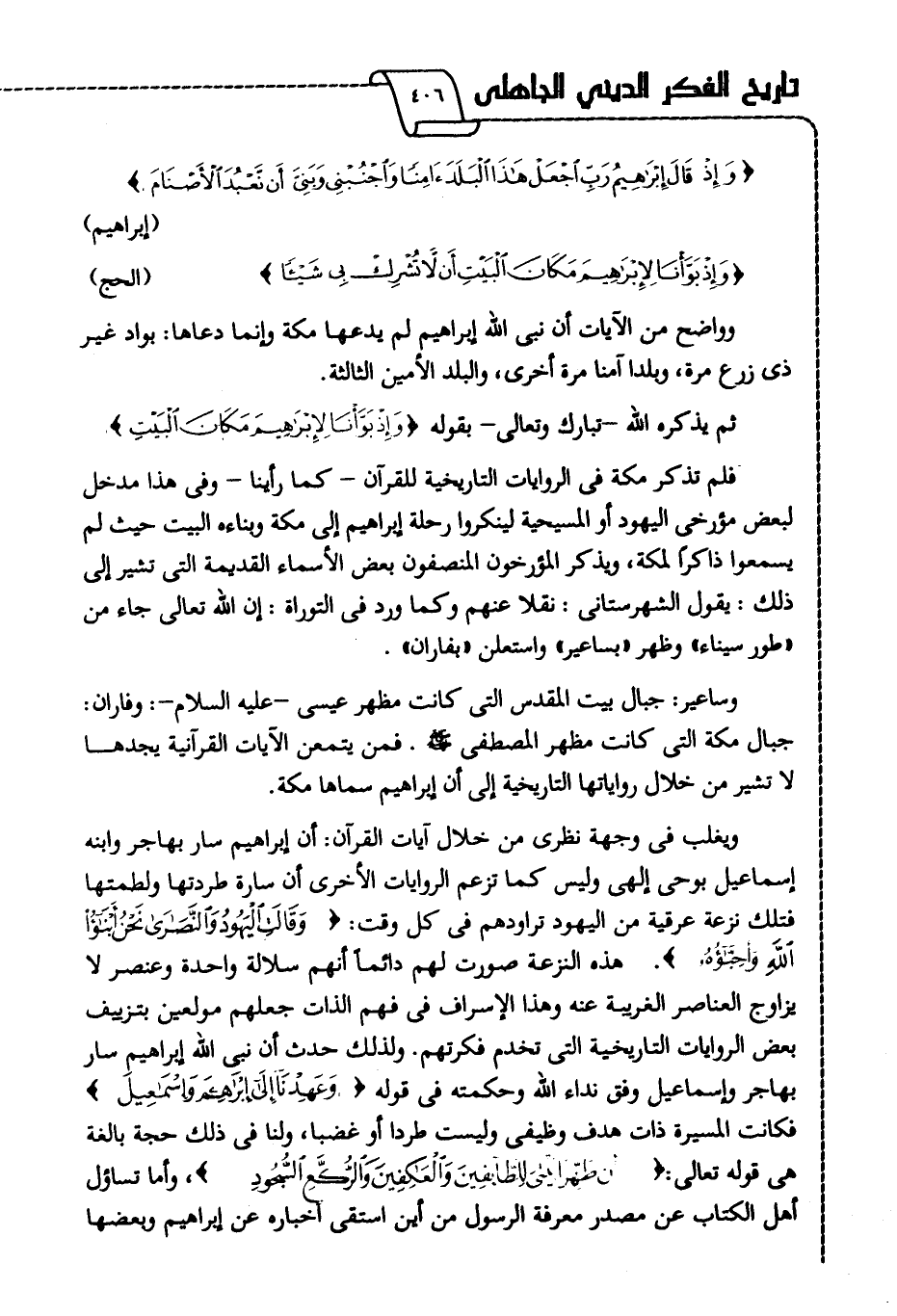 فلم تذكر مكة في الروايات التاريخية للقرآن -كما رأينا- وفي هذا مدخل لبعض مؤرخي اليهود أو المسيحية؛ لينكروا رحلة إبراهيم إلى مكة وبناءه البيت؛ حيث لم يسمعوا ذاكرا لمكة، ويذكر المؤرخون المنصفون بعض الأسماء القديمة التى تشير إلى ذلك؛ يقول الشهرستاني نقلا عنهم وكما ورد في التوراة: إن الله تعالى جاء من "طور سيناء" وظهر "بساعير" واستعلن "بفاران".