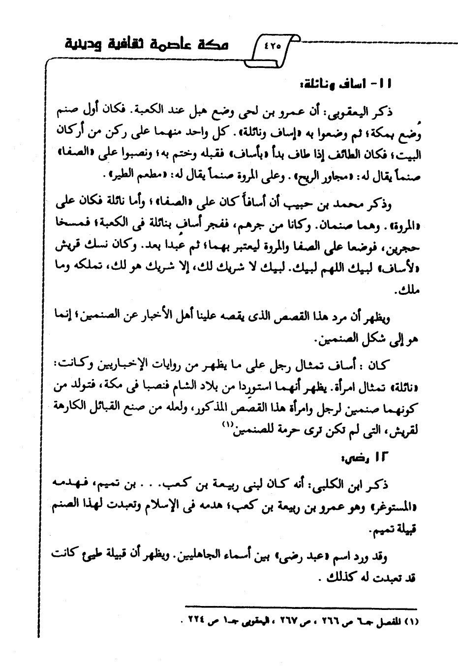 ويظهر أن مرد هذا القصص الذي يقصها علينا أهل الأخبار عن الصنمين إنما هو إلى شكل الصنمين.