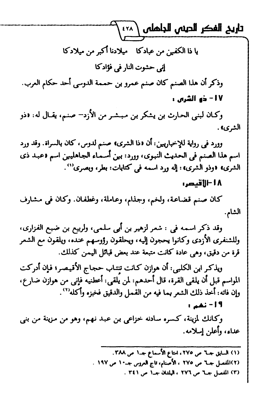 2 المفصل جـ6 ص275، الأصنام، تاج العروس جـ10 ص197.