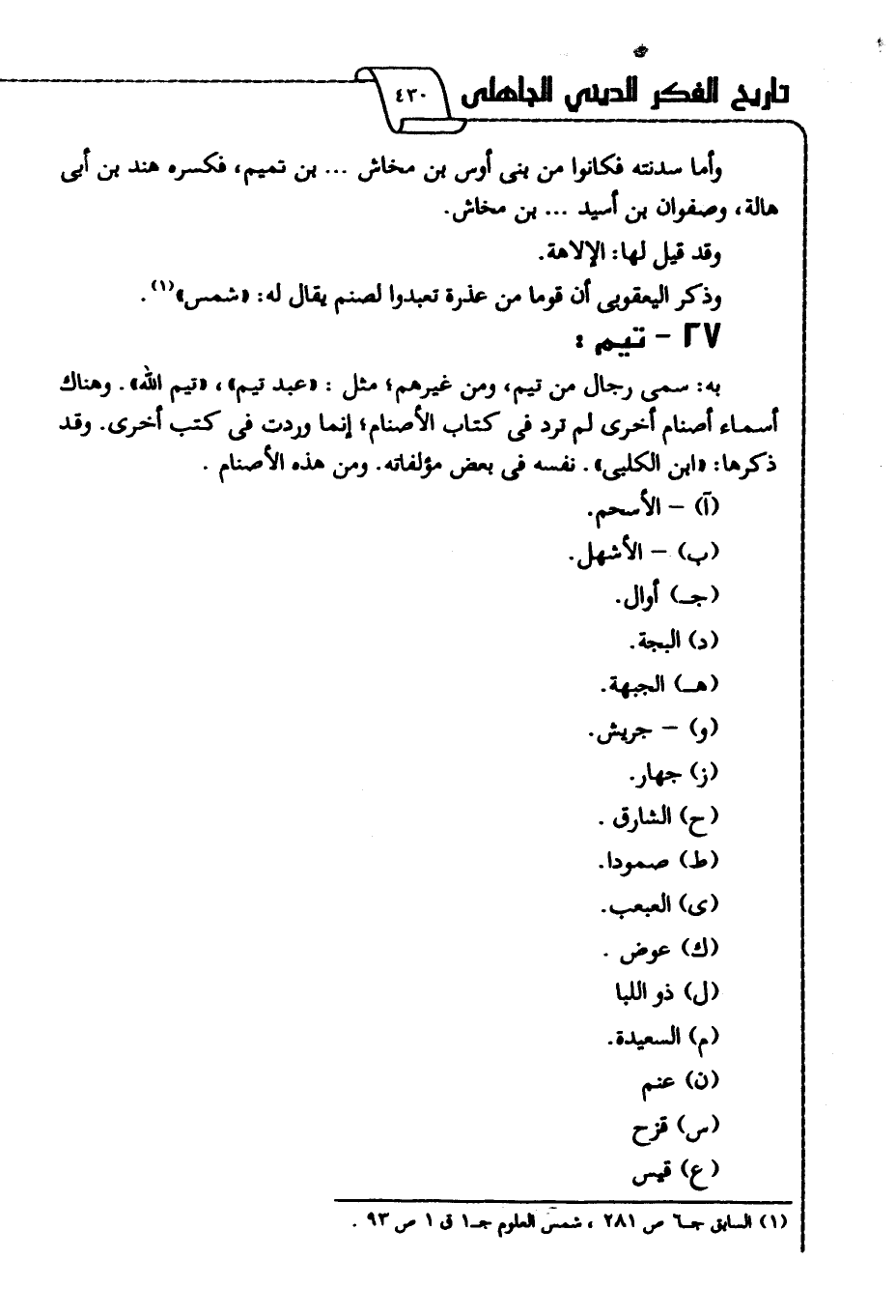 به سمي رجال من تيم، ومن غيرهم؛ مثل: "عبد تيم"، "تيم الله"، وهناك أسماء أصنام أخرى لم ترد في كتاب الأصنام؛ إنما وردت في كتب اخرى. وقد ذكرها: "ابن الكلبي". نفسه في بعض مؤلفاته؛ ومن هذه الأصنام:
