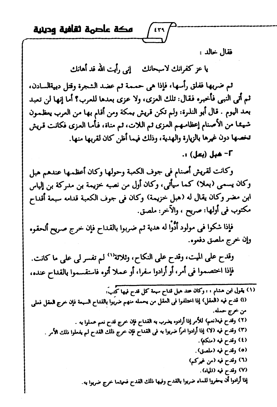 1 يقول ابن هشام: وكان عند هبل قداح سبعة كل قدح فيها كتب: