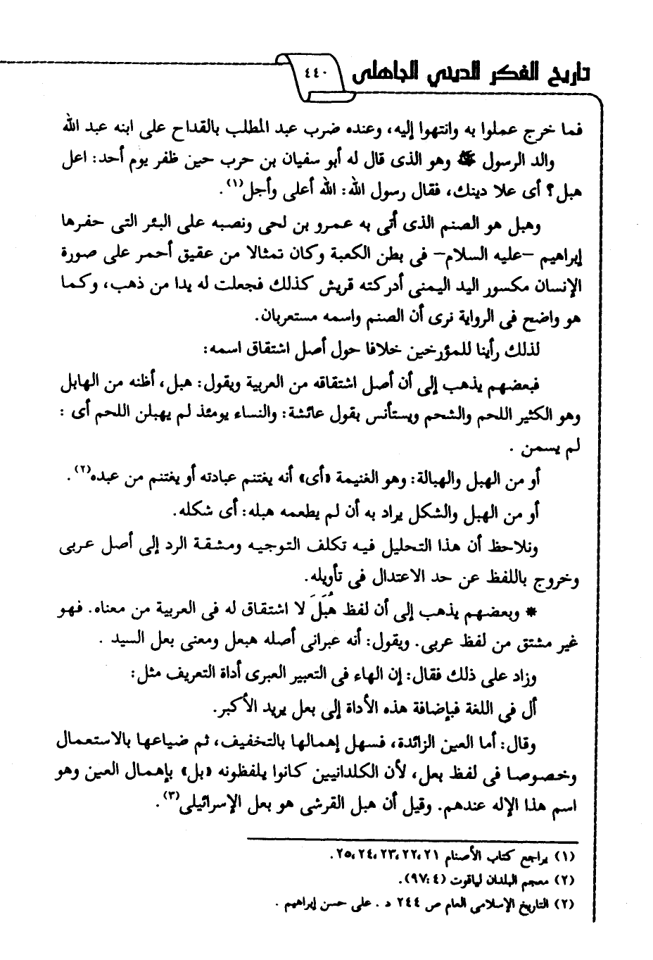 وقال: أما العين الزائدة، فسهل إهمالها بالتخفيف، ثم ضياعها بالاستعمال وخصوصا في لفظ بعل؛ لأن الكلدانيين كانوا يلفظونه "بل" بإهمال العين وهو اسم هذا الإله عندهم. وقيل أن هبل القرشي هو بعل الإسرائيلي3.