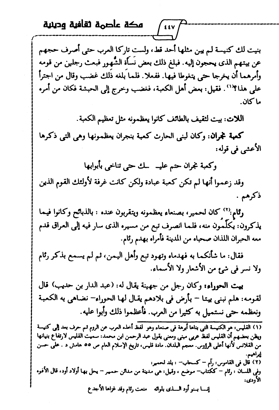 2 قال في القاموس: رآم كسحاب: بلد لحمير: وفي اللسان: رئام ككتاب: موضع، وقيل: هي مدينة من مدائن حمير يحل بها أولاد أود، قال الأفوه الأودي: