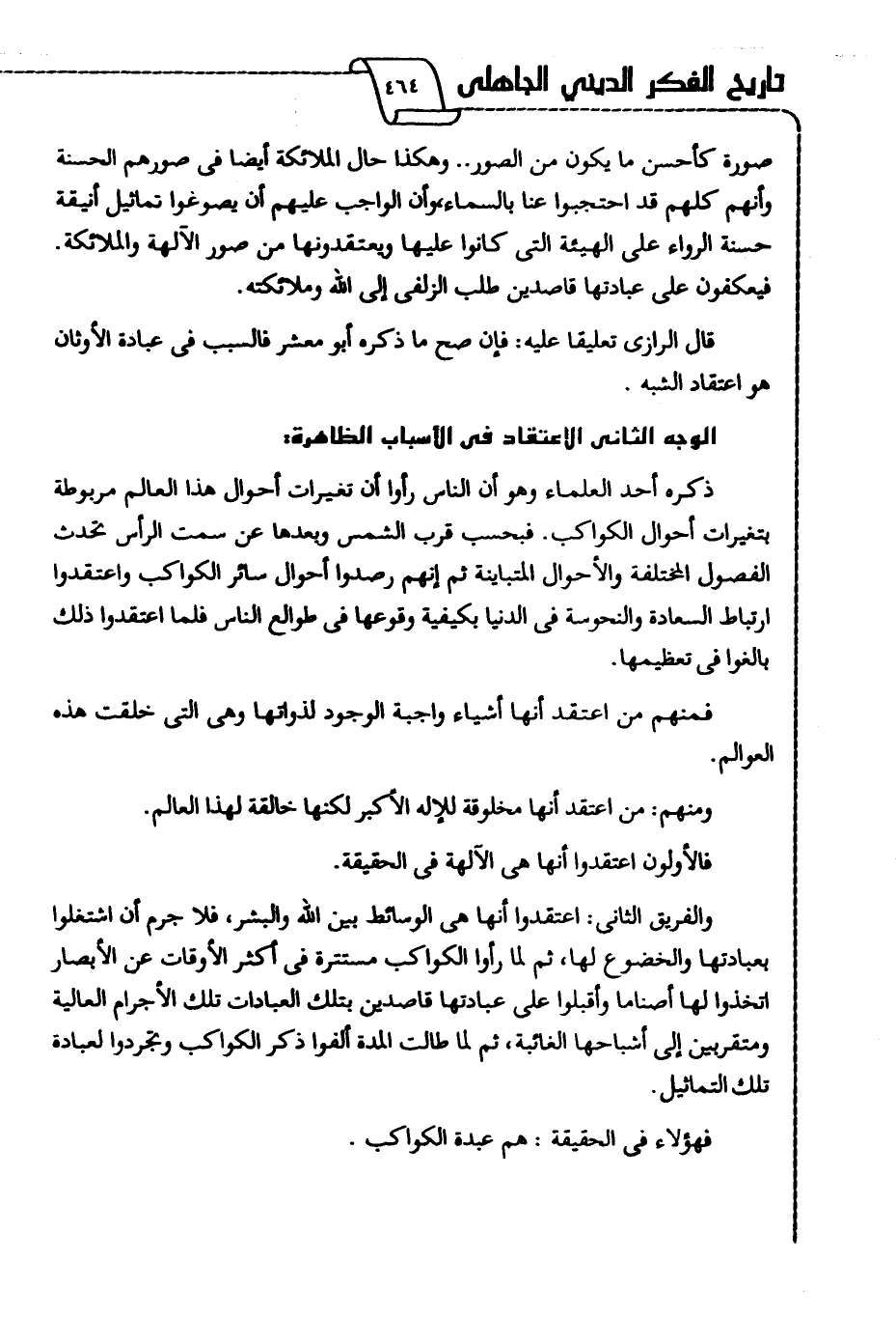قال الرازي تعليقًا عليه: فإن صح ما ذكره أبو معشر فالسبب في عبادة الأوثان هو اعتقاد الشبه.