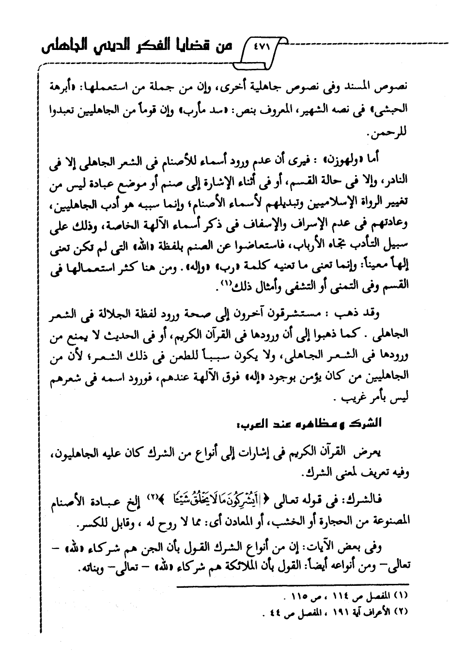 يعرض القرآن الكريم في إشارات إلى أنواع من الشرك كان عليه الجاهليون، وفيه تعريف لمعنى الشرك.