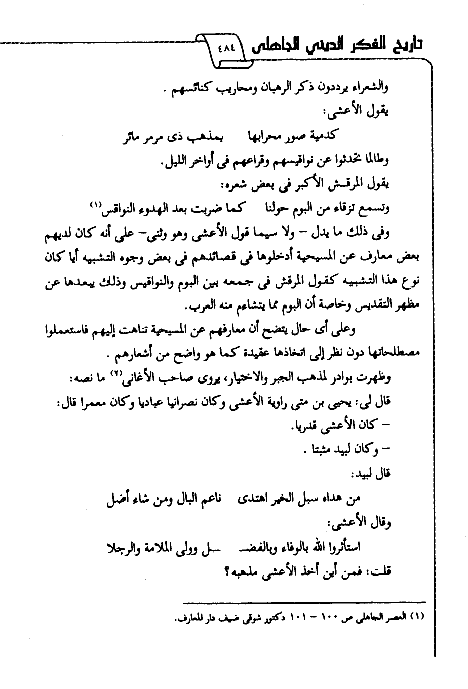 1 العصر الجاهلي ص100-101 دكتور شوقي ضيف دار المعارف.